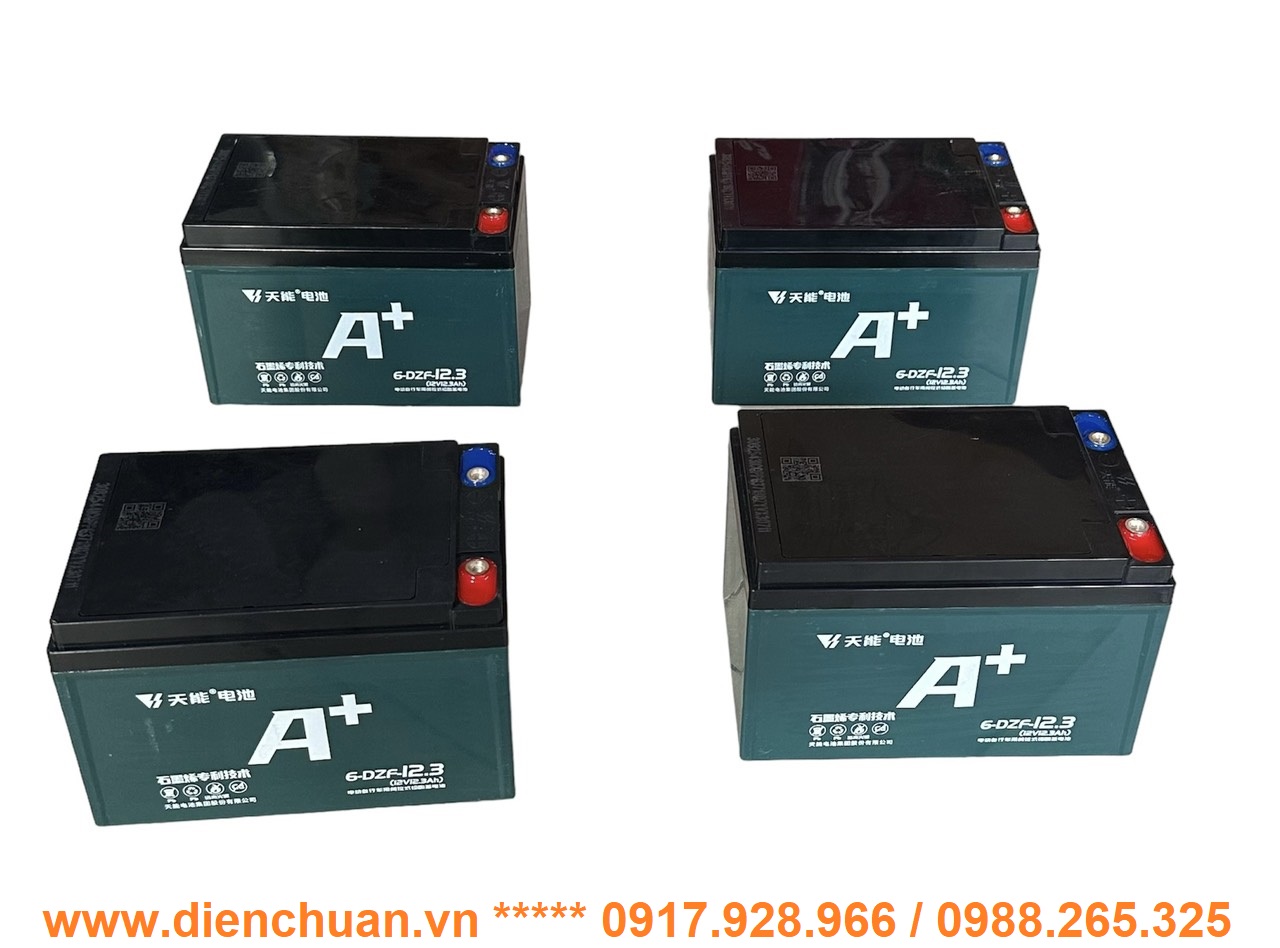 Ắc quy xe đạp điện Tianneng A+ 6-DZF-12.3 12V-12.3Ah hàng nội địa số 1 Trung quốc Là một trong những loại ắc quy lắp cho xe đạp điện xe máy điện tốt nhất trên thị trường hiện nay được các hãng xe điện nổi tiếng tin dùng, tuổi thọ rất bền, nếu được nạp chuẩn và động cơ xe tốt, tuổi thọ có thể kéo dài trên 2 năm, ngoài ra có thể dùng ắc quy này theo nhiều nhu cầu khác nhau , ví dụ như dùng cho lưu điện thang máy , lưu điện UPS, lưu điện máy tính, máy kích điện, quạt 12V, thắp sáng bóng đèn 12V, loa kéo .....vv ...