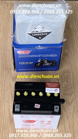 Ắc quy xe máy phân khối lớn SYB14L-B2 (12V14Ah/10HR) Bình nước - cọc trái