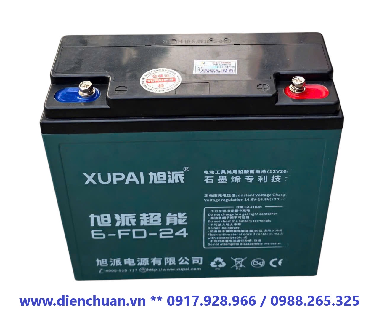 Bình Ắc quy Xupai 12V-24Ah 6-FD-24 / 6-DZF-24 được công ty Điện Chuẩn phân phối đảm bảo hàng chính hãng, giá thành tốt nhất và chế độ bảo hành chu đáo nhất.