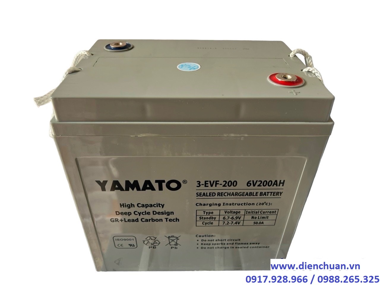 Ắc quy Yamato 6V 200Ah ( 3-EVF-200) là dòng ắc quy khô xả sâu DEEP CYCLE được thiết kế đặc biệt để cấp nguồn cho thiết bị điện trong thời gian dài hơn với khả năng tăng chu kỳ phóng điện sâu.