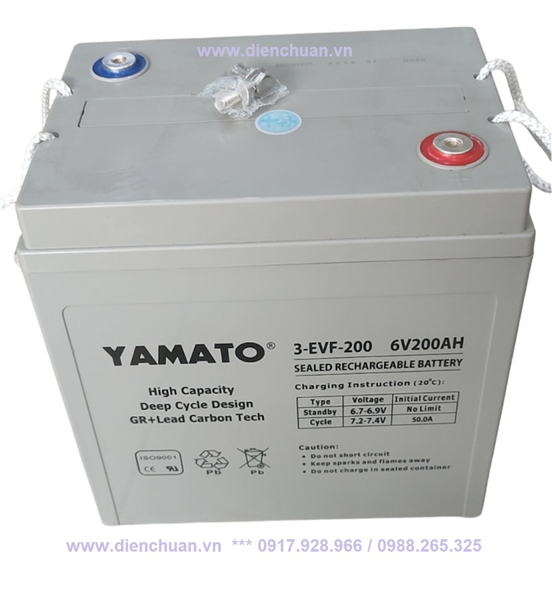 Công ty Điện Chuẩn là đơn vị bán và phân phối ắc quy Yamato 6V 200Ah ( 3-EVF-200) dùng cho xe điện du lịch, xe điện chở khách, xe golf, xe nâng .... lâu năm trên thị trường, các sản phẩm ắc quy của công ty chúng tôi bán ra là hàng mới chính hãng, giá cả phải chăng, bảo hành dài hạn, tư vấn nhiệt tình