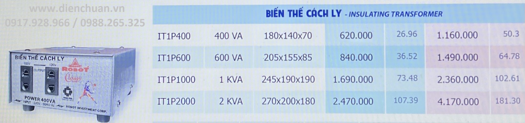 Biến áp (biến thế ) cách ly Robot 400VA 1 pha
