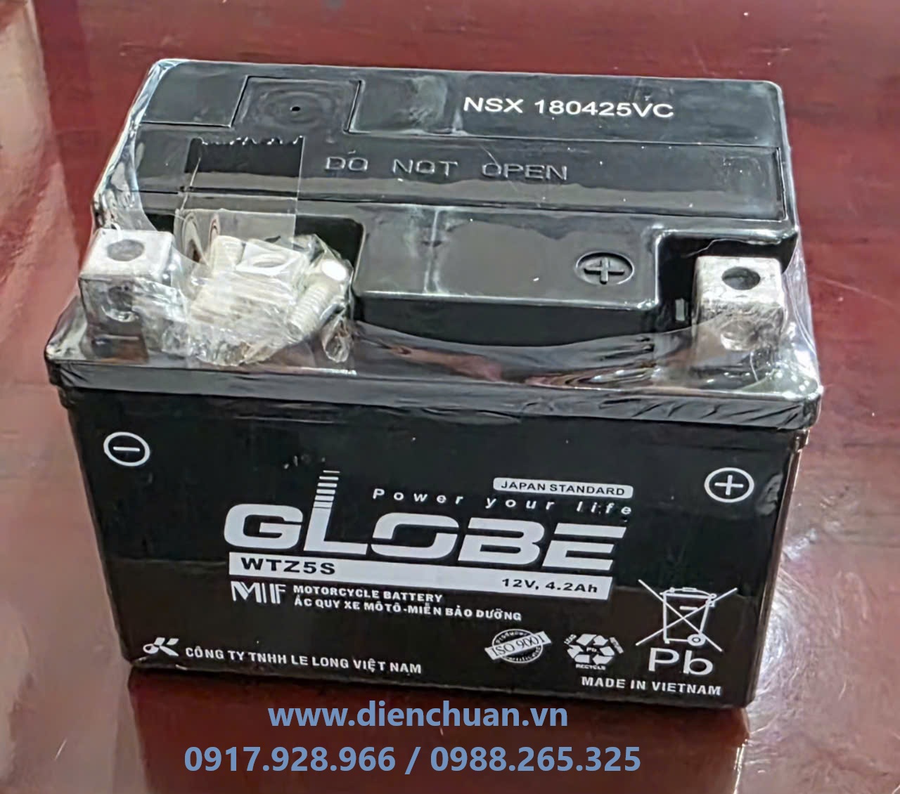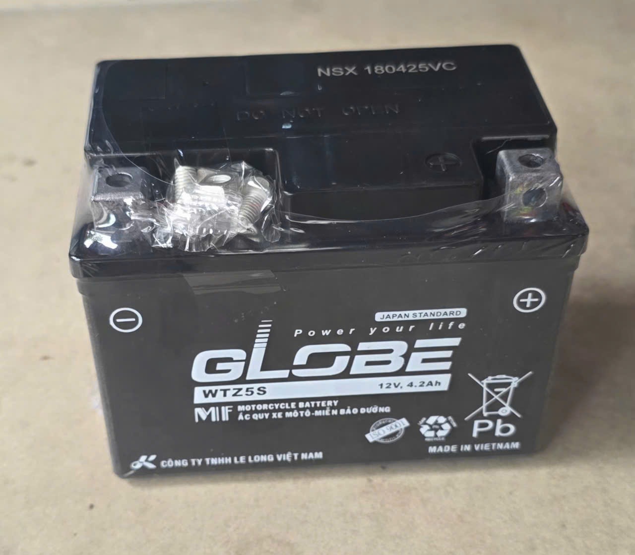 Bình ắc quy khô xe máy Globe WTZ5S 12V 4.2Ah