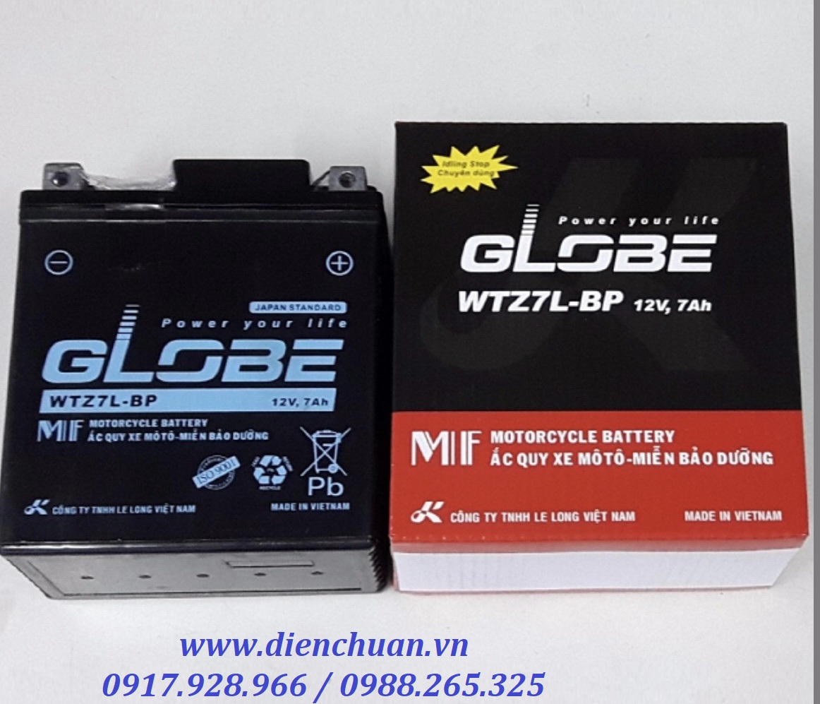 Công ty cổ phần Điện Chuẩn chuyên phân phối ắc quy GLOBE chính hãng giá rẻ. Bình Ắc quy Globe WTZ7L-BP (12V 7Ah ) được công ty Điện Chuẩn bán tại các tỉnh: Hà Nội, Bắc Ninh, Vĩnh Phúc, Ninh Bình, Nam Định, Thái Bình, Hà Nam, Hải Phòng, Đà Nẵng, Thanh Hoá, Bình Dương, Đồng Nai, Thành phố Hồ Chí Minh và tất cả các tỉnh thành trong cả nước, với giá bán phải chăng và chể độ bảo hành chu đáo