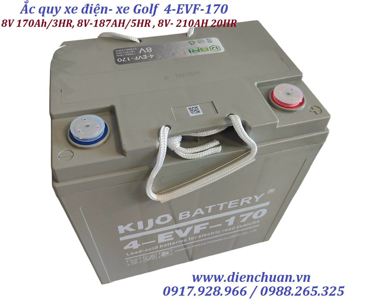 Ắc Quy Bình ắc quy Kijo 8V- 210AH ( 4-EVF-170 ) là loại ắc quy Gel khô Axit chì xả sâu (Deep Cycle) được sử dụng cho các loại xe điện, xe golf ( xe chạy trong các sân gôn ), xe chở khách trong khu du lịch, xe nâng hàng, xe nâng người lên cao, hệ thống năng lượng mặt trời, và nhiều thiết bị chuyên dụng khác... Ắc Quy Kijo được sản xuất và nhập khẩu tại Trung Quốc