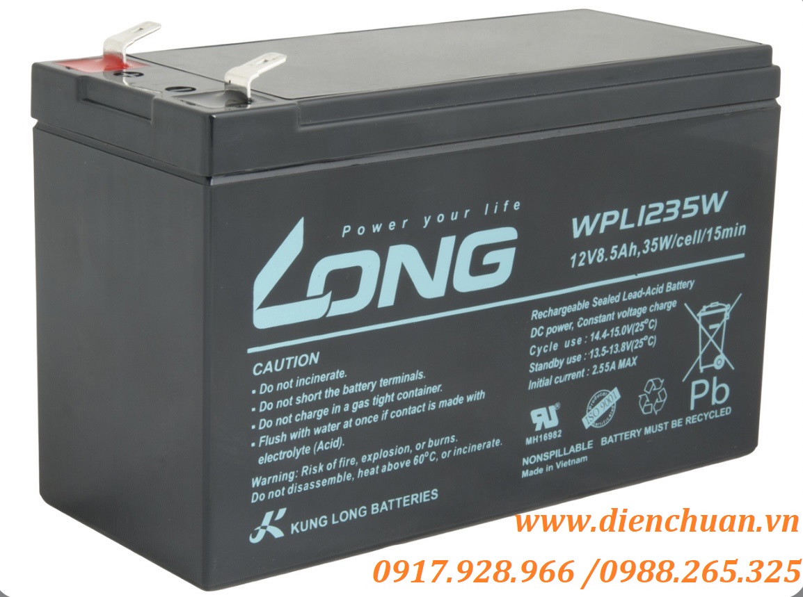 Bình ắc quy Long WPL1235W ( 12V-8.5AH, 35W/ Cell/ 15 min )