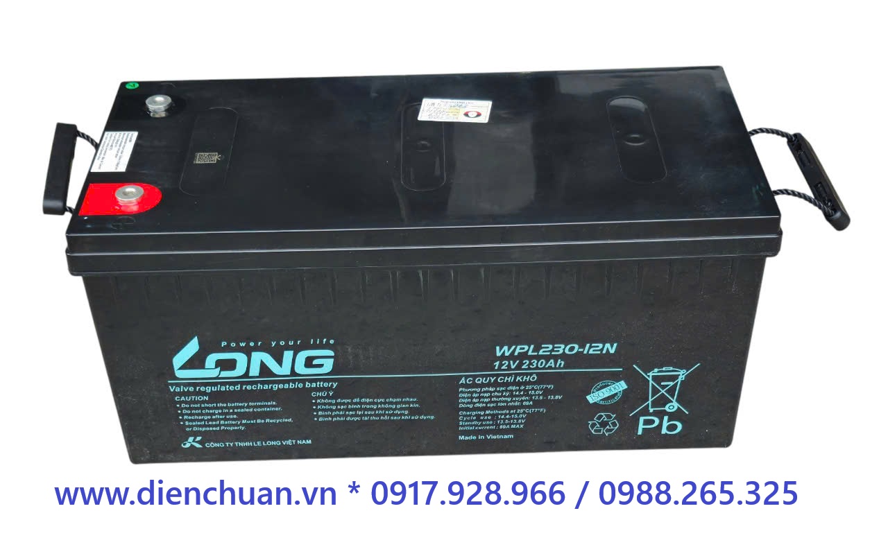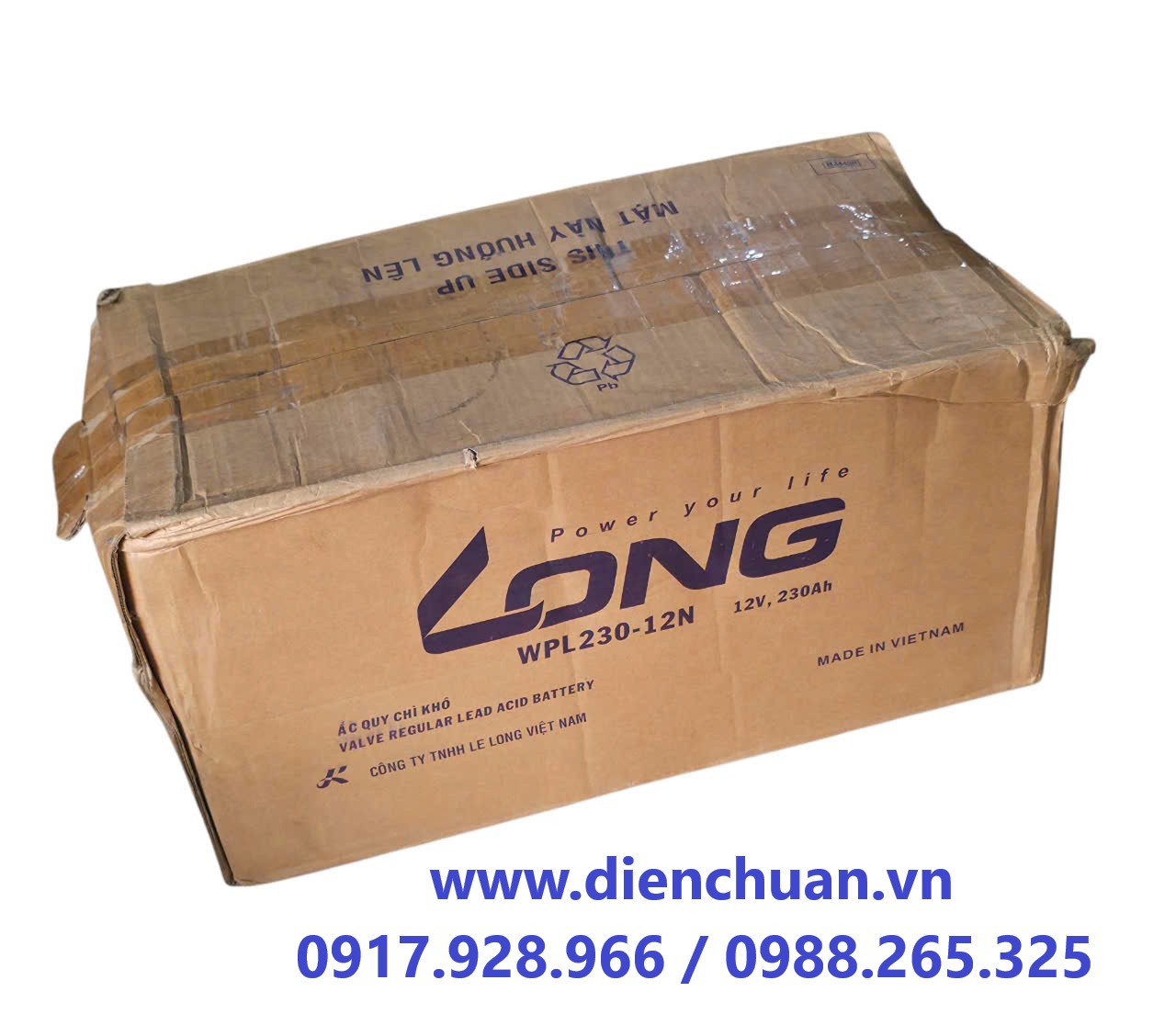 Ắc quy long 12v-230ah (WPL230-12N) đến từ thương hiệu Long, sản xuất tại nhà máy Le Long (nơi sản xuất cả acquy Long và acquy Globe). Đây là loại acquy khô, kín khí, tuổi thọ cao.