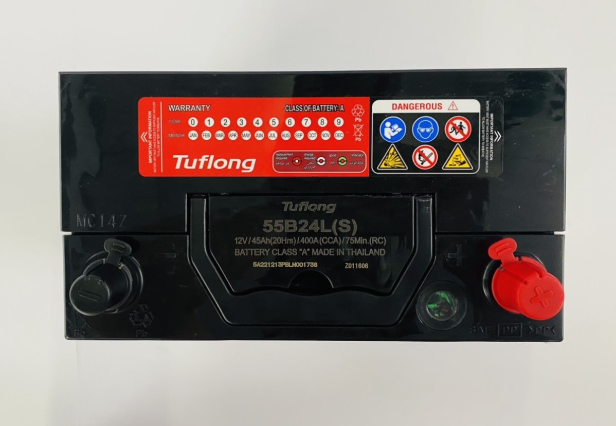 Bình ắc quy Tuflong 55B24L(S) / 12V-45Ah được sản xuất bởi tập đoàn Hitachi Battery- thương hiệu Nhật Bản được sản xuất tại Thái Lan luôn dẫn đầu ngành công nghiệp ắc quy tại Nhật Bản và các nước châu Á và nhanh chóng xuất hiện trên toàn cầu. Tuflong không chỉ là thương hiệu đại diện cho Nhật Bản mà còn là một trong năm thương hiệu hàng đầu xuất khẩu sang hơn 30 quốc gia trên thế giới.