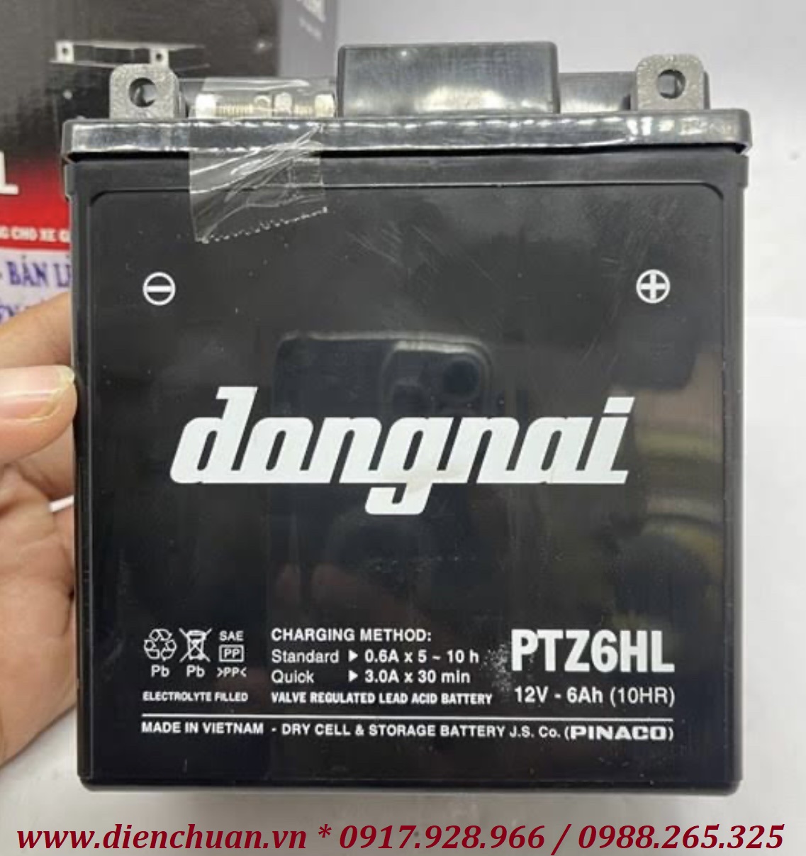 Bình ắc quy xe máy Đồng Nai PTZ6HL ( 12V-6AH)dùng cho xe Dream, Wave, Future, Sirius, Jupiter, Taurus, Mio, Viva, Magic