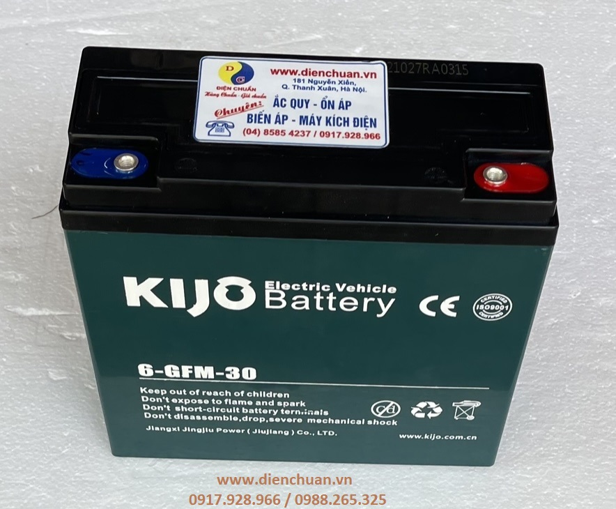Bình xe máy điện 12V 30Ah KIJO 6-GFM-30 được công ty Điện Chuẩn phân phối đảm bảo hàng chính hãng, giá thành tốt nhất và chế độ bảo hành chu đáo nhất.