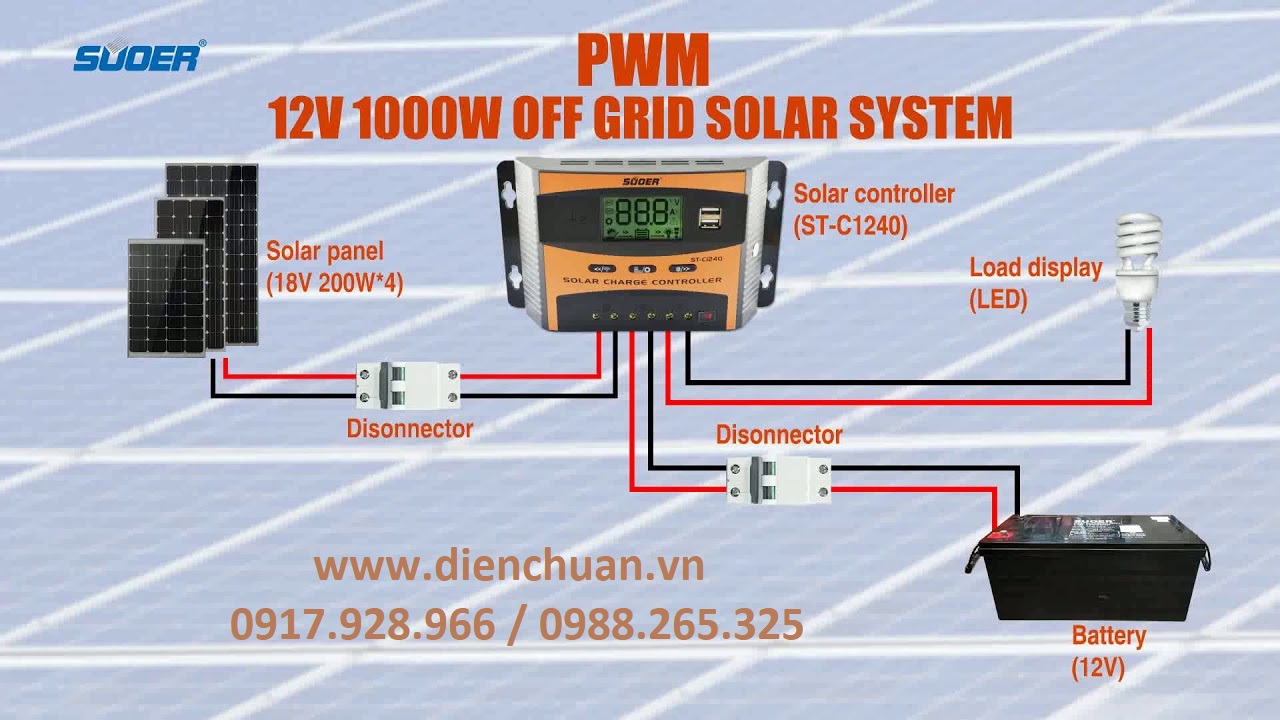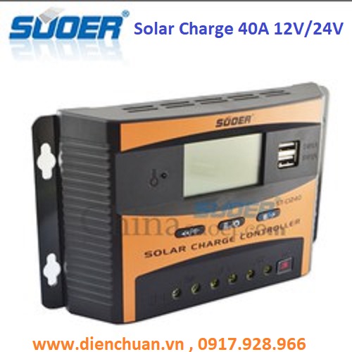 Bộ điều khiển sạc năng lượng mặt trời 40A 12V-24V SUOER ST-C1240