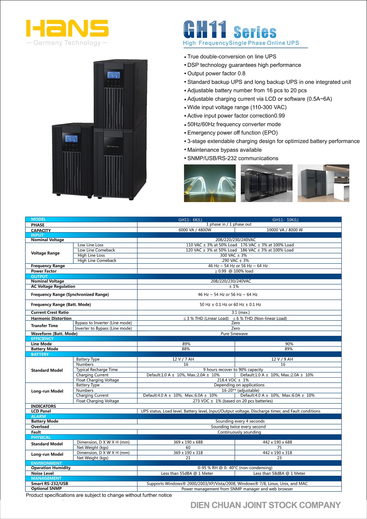 Bộ lưu điện UPS Online Hans 6000VA GH11 6KVA