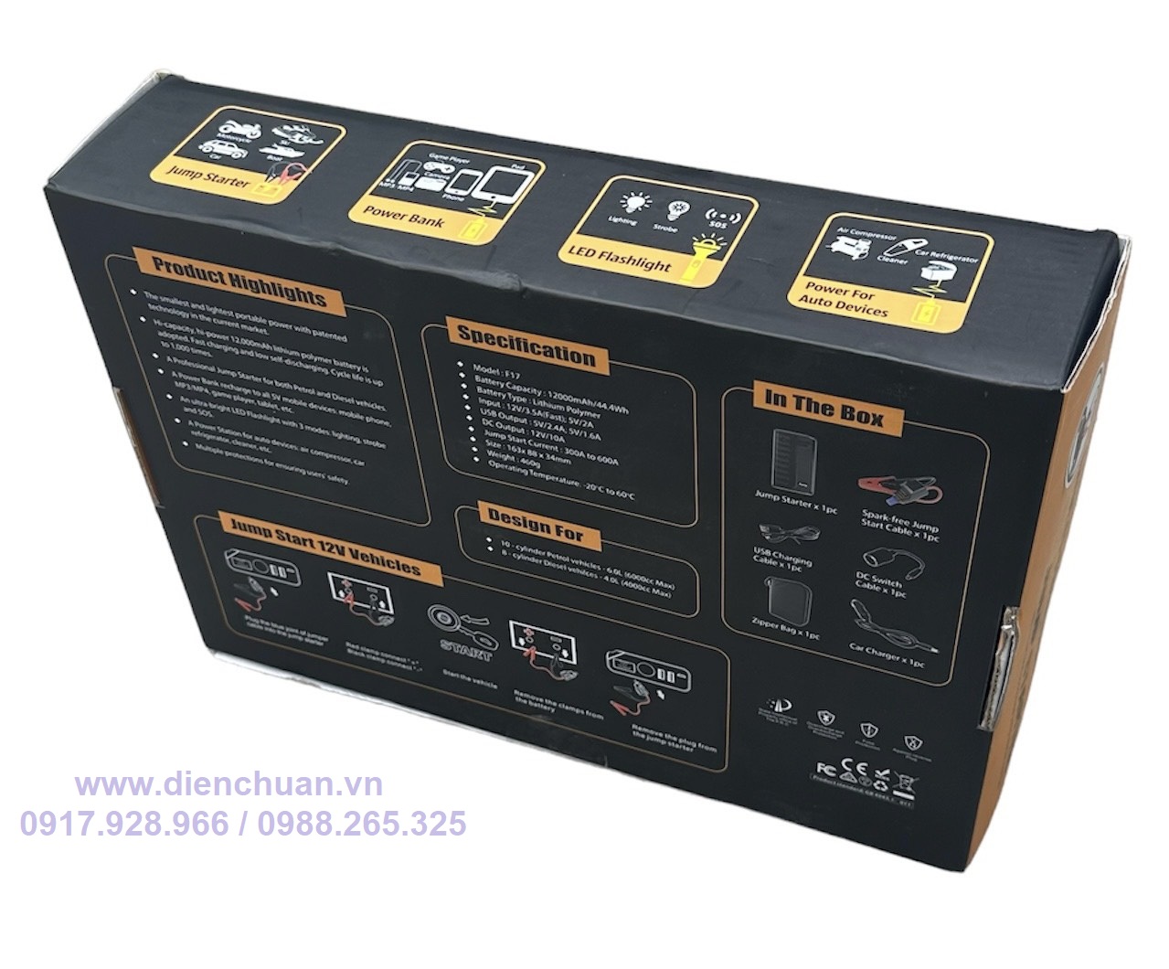 Bộ pin kích đề nổ ô tô 12V kiêm sạc dự phòng điện thoại Jump F17