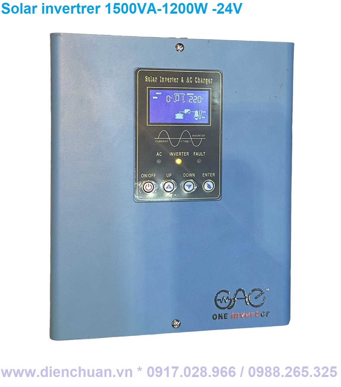 Công ty Điện Chuẩn là Đại Lý phân phối Kích điện- Biến tần Solar Inverter sin chuẩn 1500VA/ 1200W / 24V tại thị trường Việt Nam, công ty chúng tôi kinh doanh phân phối bình ắc quy, inverter - kích điện- Biến tần, tấm pin năng lượng mặt trời, quạt ắc quy 12V DC/ quạt năng lượng mặt trời lâu năm trên thị trường, các sản phẩm của công ty chúng tôi bán ra là hàng mới chính hãng, giá cả phải chăng, bảo hành dài hạn, tư vấn nhiệt tình.