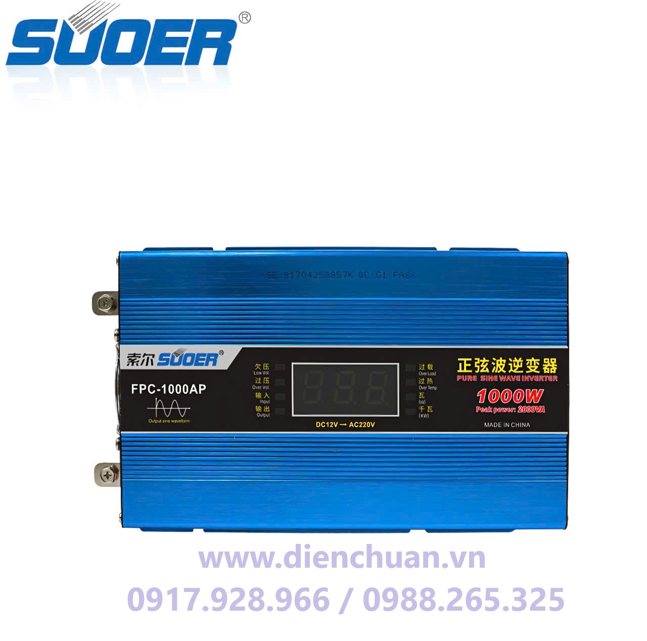 Kích điện sin chuẩn 1000W 12V Suoer FPC-1000AP / Biến tần inverter sin chuẩn Suoer FPC-1000AP- hàng nhập khẩu chính hãng có giấy tờ CO&CQ