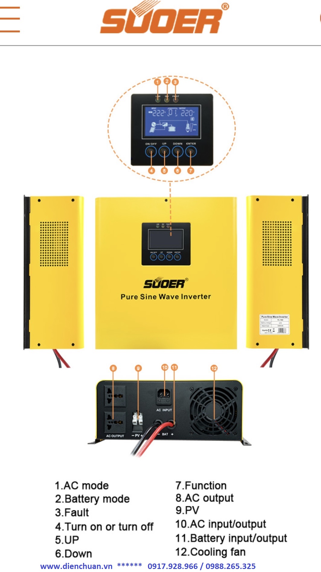 Quý khách cần tư vấn mua Kích điện-Biến tần Solar sin chuẩn/ Inverter Off-grid 1KVA 1kW 1000W (Suoer PLP-1000W-12V ) xin vui lòng liên hệ: