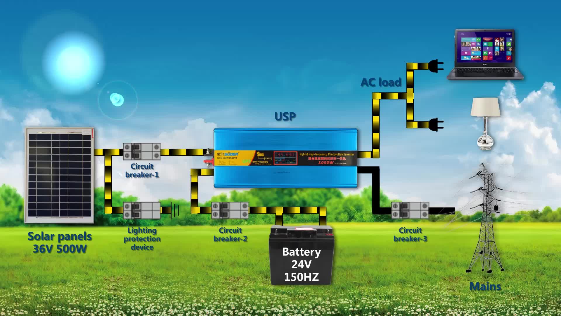 Tính năng Inverter Solar Suoer 1500VA/1000W 24V,Model: SON-SUW1500VA