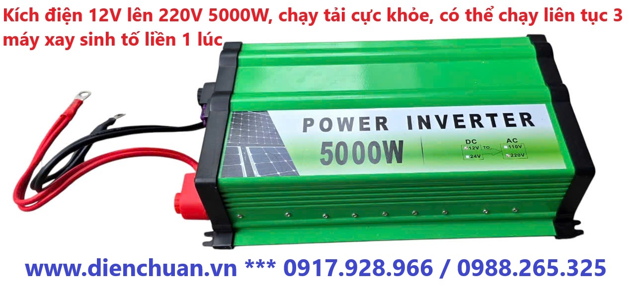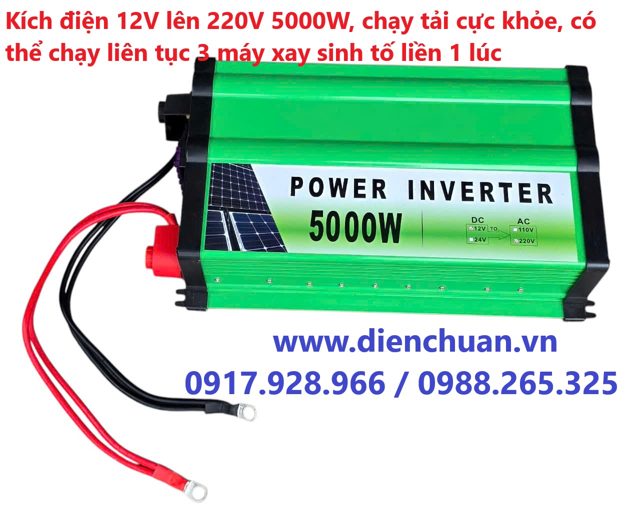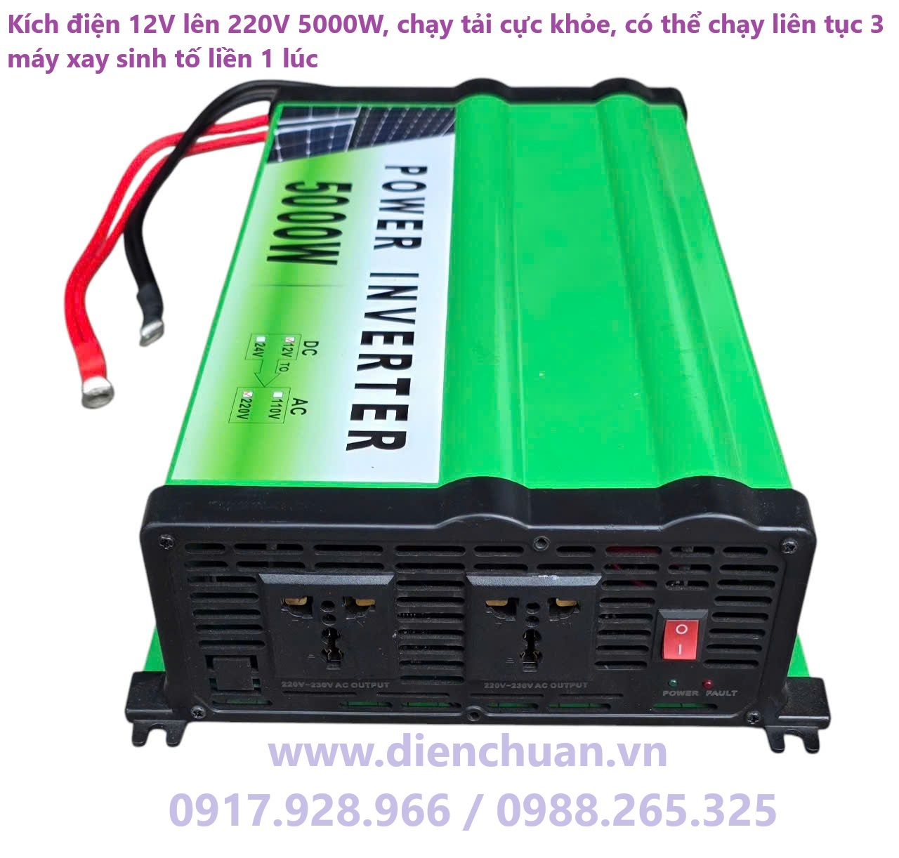Máy kích điện 12V lên 220V công suất 5000W chạy tải cực khỏe, có thể dùng cắm chạy liên tục cho 3 máy say sinh / máy ép trái cây hoa quả để bán hàng dọc đường, hoặc có thể dùng cho gia đình khi mất điện lưới