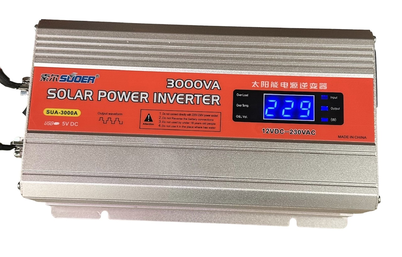 Công ty Điện Chuẩn là Đại Lý phân phối Máy kích điện 12V lên 3000VA 220V có màn hình hiển thị LCD - SUOER SUA-3000A tại thị trường Việt Nam, công ty chúng tôi kinh doanh phân phối bình ắc quy, inverter - kích điện- Biến tần, tấm pin năng lượng mặt trời, quạt ắc quy 12V DC/ quạt năng lượng mặt trời lâu năm trên thị trường, các sản phẩm của công ty chúng tôi bán ra là hàng mới chính hãng, giá cả phải chăng, bảo hành dài hạn, tư vấn nhiệt tình.