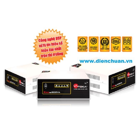 MÁY KÍCH ĐIỆN TOKA SÓNG SIN CHUẨNSóng sin chuẩn: MAY KÍCH ĐIỆN TOKA nhập khẩu nguyên chiếc từ Ấn Độ, sử dụng công nghệ DSP sử lý tín hiệu số hiện đại giúp ổn định, an toàn với mọi thiết bị gia đình. Bền bỉ và đáng tin cậy : Tuổi thọ cao Điều khiển tự động : Tự động sạc khi có điện lưới, tự động kích điện khi mất điện lưới. Chỉ thị bằng đèn LED : Biểu thị các trạng thái đang hoạt động của máy kích điện (sạc, kích điện, ắc uy yếu, quá tai …) Cảnh báo bằng âm thanh: quá tải (110% công suất) , ắc quy yếu (<10.4V), đoản mạch. Cơ chế tự bảo vệ đầy đủ nhất trên thị trường Sạc ắc quy thông minh: tự động chọn dòng sạc giúp tăng 1,5 lần tuổi thọ ắc quy ĐẶC ĐIỂM MÁY KÍCH ĐIỆN TOKA ECO |