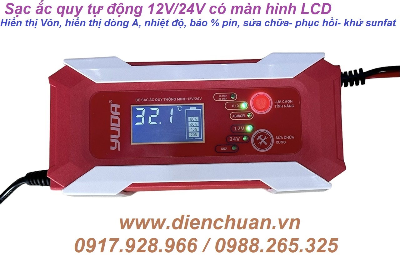 Máy sạc ắc quy tự động 12V/24V sạc cho ắc quy từ 5Ah đến 100Ah YUDA YD1224-8A