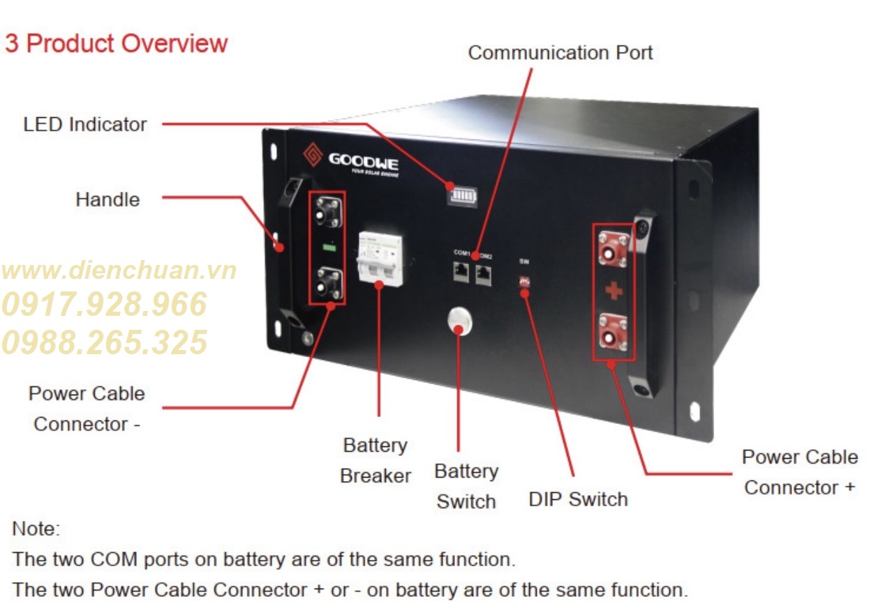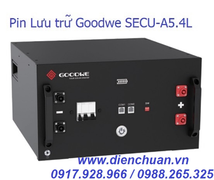 Pin Lithium/ Lifepo4 48V 100Ah Goodwe SECU-A5.4L. Pin lưu trữ Lithium GoodWe SECU-A Series là một pin lithium điện áp thấp, được làm từ vật liệu lithium an toàn và bền, nó còn có tên tiếng Việt là pin phốt phát sắt (Pin LiFePO4). Pin Lithium Goodwe theo thiết kế mô-đun, nên nó có thể mở rộng bằng cách đấu song song hoặc đấu nối tiếp theo thiết bị hoặc theo khách hàng mong muốn. Là một thiết bị cắm-đấu nối để chạy trực tiếp qua biến tần- inverter, nó có thể cài đặt dễ dàng và nhanh chóng. Nhờ thiết kế an toàn, các pin có thể được kết nối song song với nhau. Chất liệu pin cũng thân thiện với môi trường, mang lại cho bạn an toàn, thoải mái sử dụng mà ít gặp trục trặc .