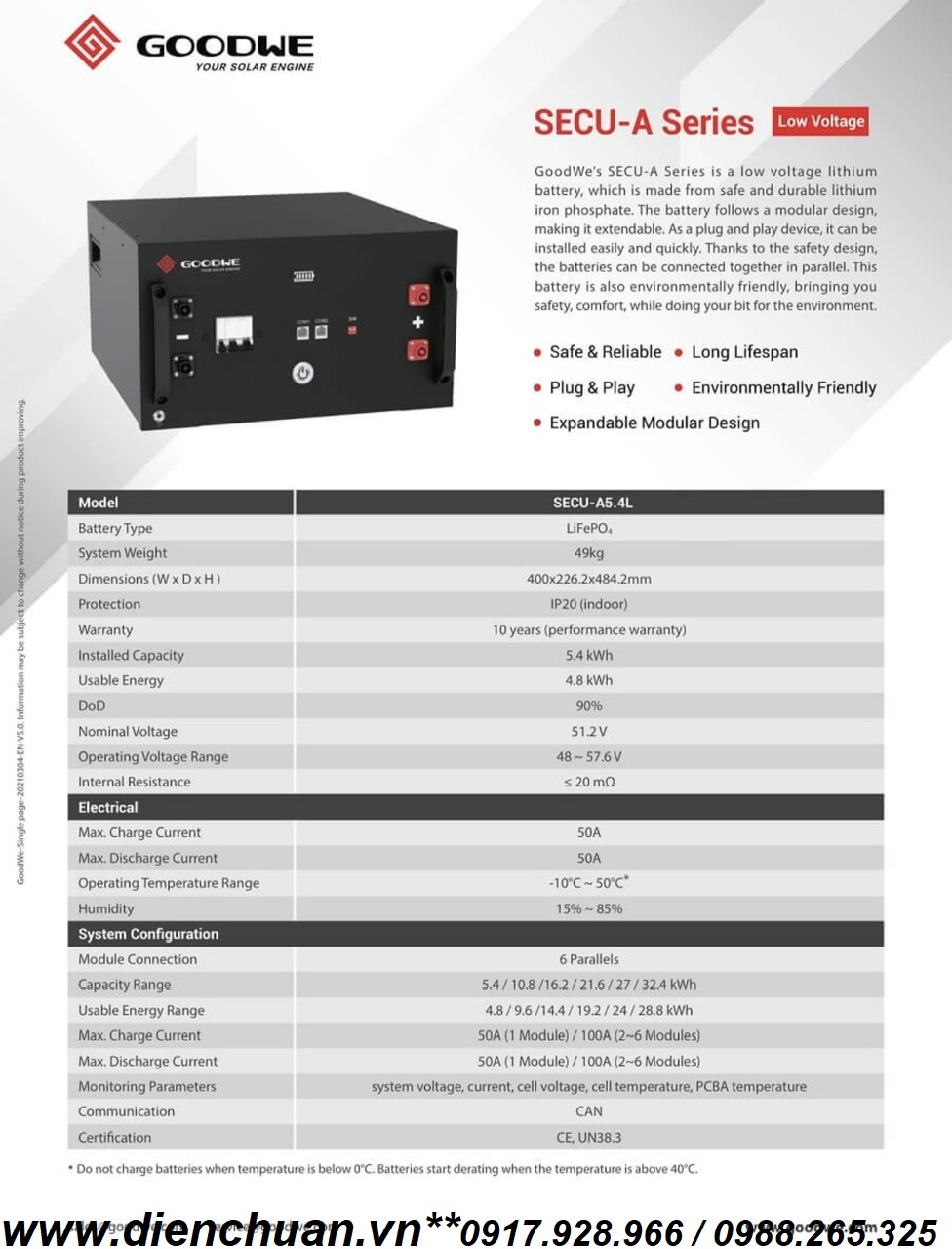 Thông số kỹ thuật Pin Lithium Good We SECU-A5.4L (Datasheet Goodwe GW SECU )
