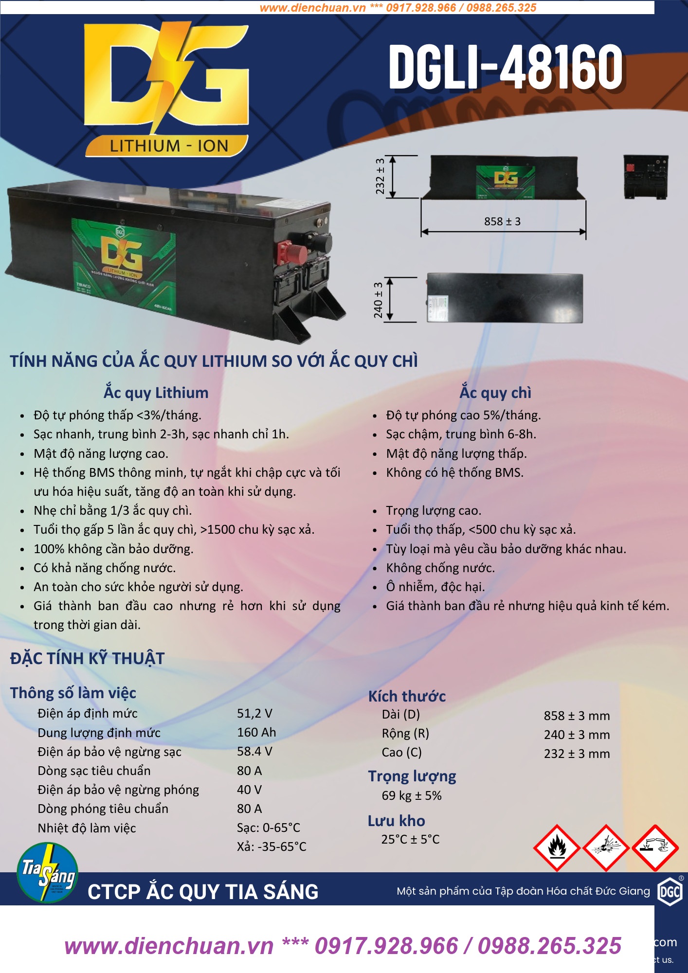Thông số kỹ thuật pin Lithium DGLI-481600 ( 48V-160AH )