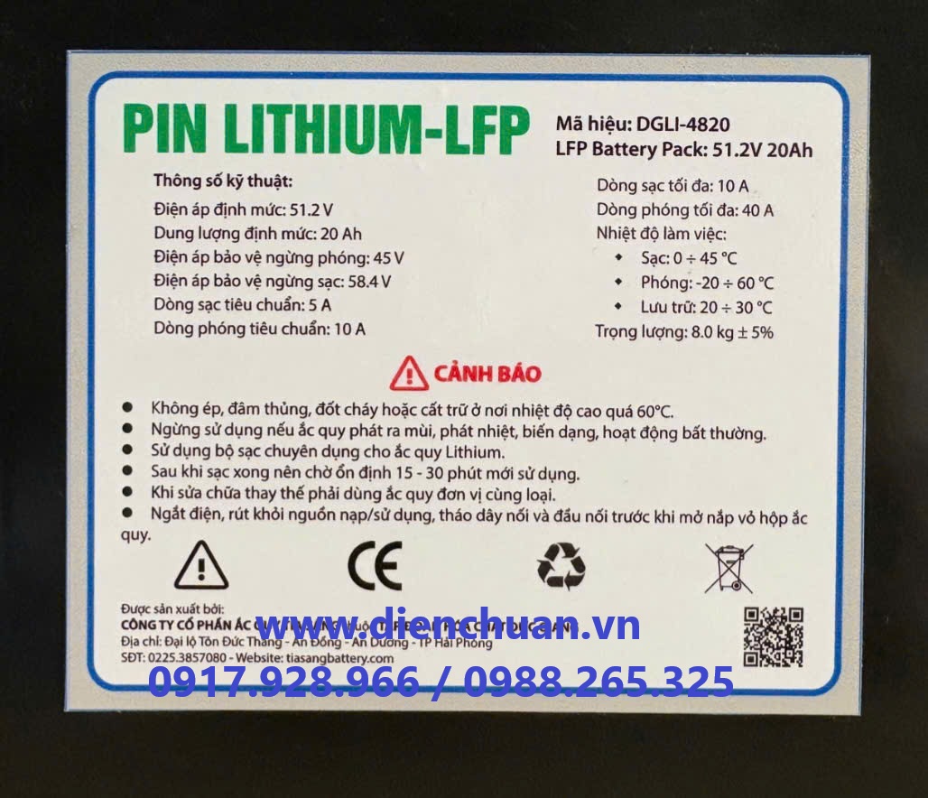 Pin Lithium 48V 20Ah cho xe điện DGLI-4820 Tia Sáng Đức Giang