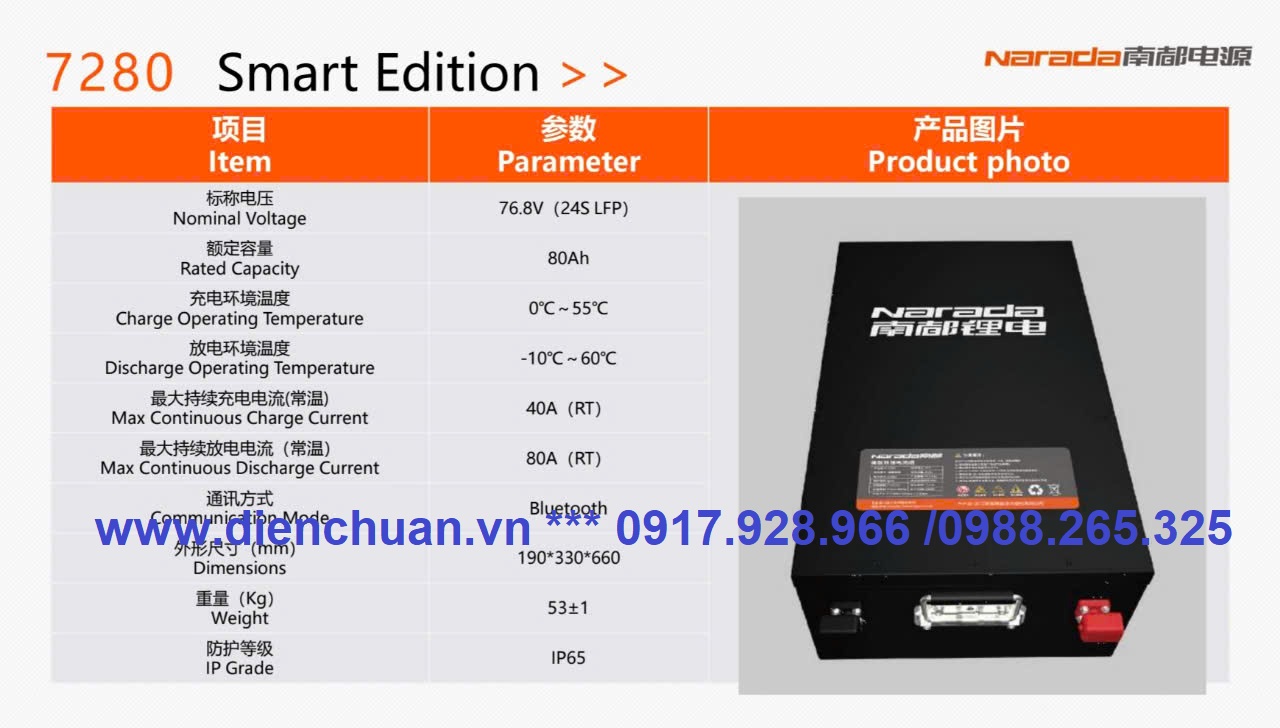 Thương hiệu: Narada, Mã pin / Model sản phẩm: 7280