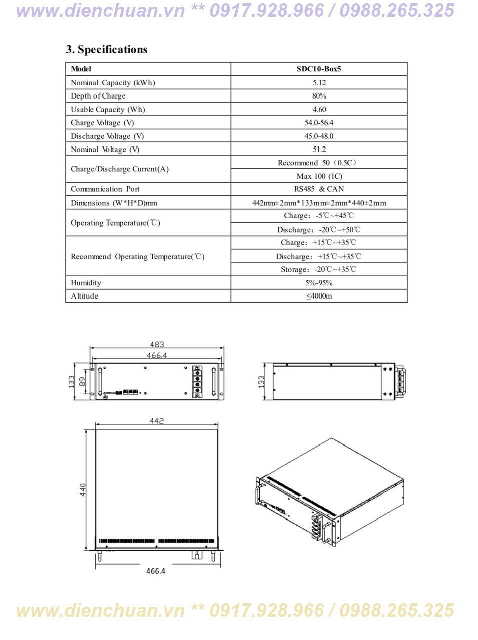 Thông số kỹ thuật Pin lưu trữ Lithium Shoto SDC10-Box 5 (48V-100Ah )