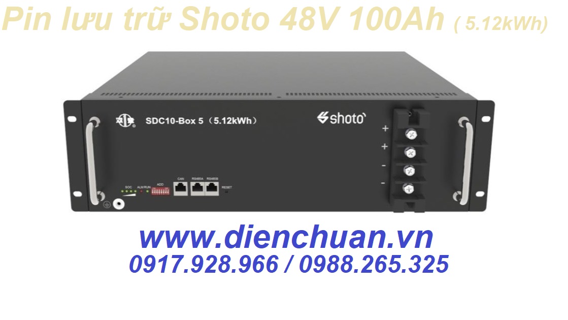 Pin Lithium/ LFP Battery/ Lithium Iron Phosphate/LiFePo4 Shoto 48V 100Ah SDC10-Box 5 ( 5.12kWh) / Pin chính hãng mới 100% có giao tiếp