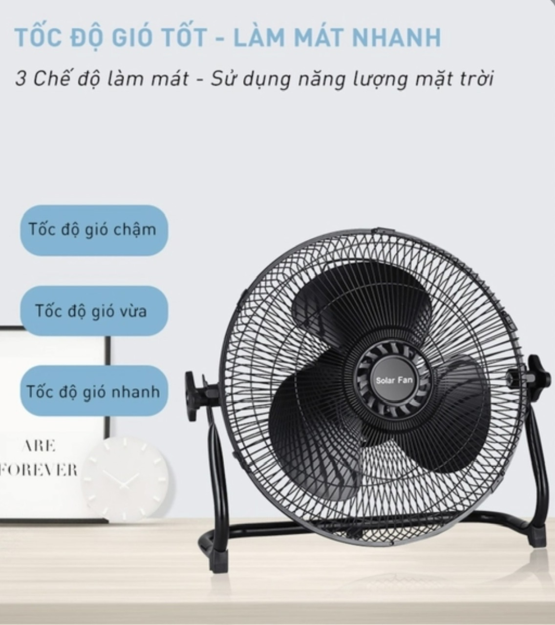 ✅Quạt tích điện năng lượng mặt trời Solar Fan XY009jx có công dụng chính là làm mát không gian hiệu quả. Quạt có công suất 15W, pin sạc Lithium 10000mah, có thể sạc bằng năng lượng mặt trời hoặc điện lưới 220V. Quạt có thể hoạt động liên tục từ 5 đến 8 giờ sau khi sạc đầy pin. Quạt cũng có 3 cấp độ gió để bạn điều chỉnh theo nhu cầu và cảm nhận của mình.