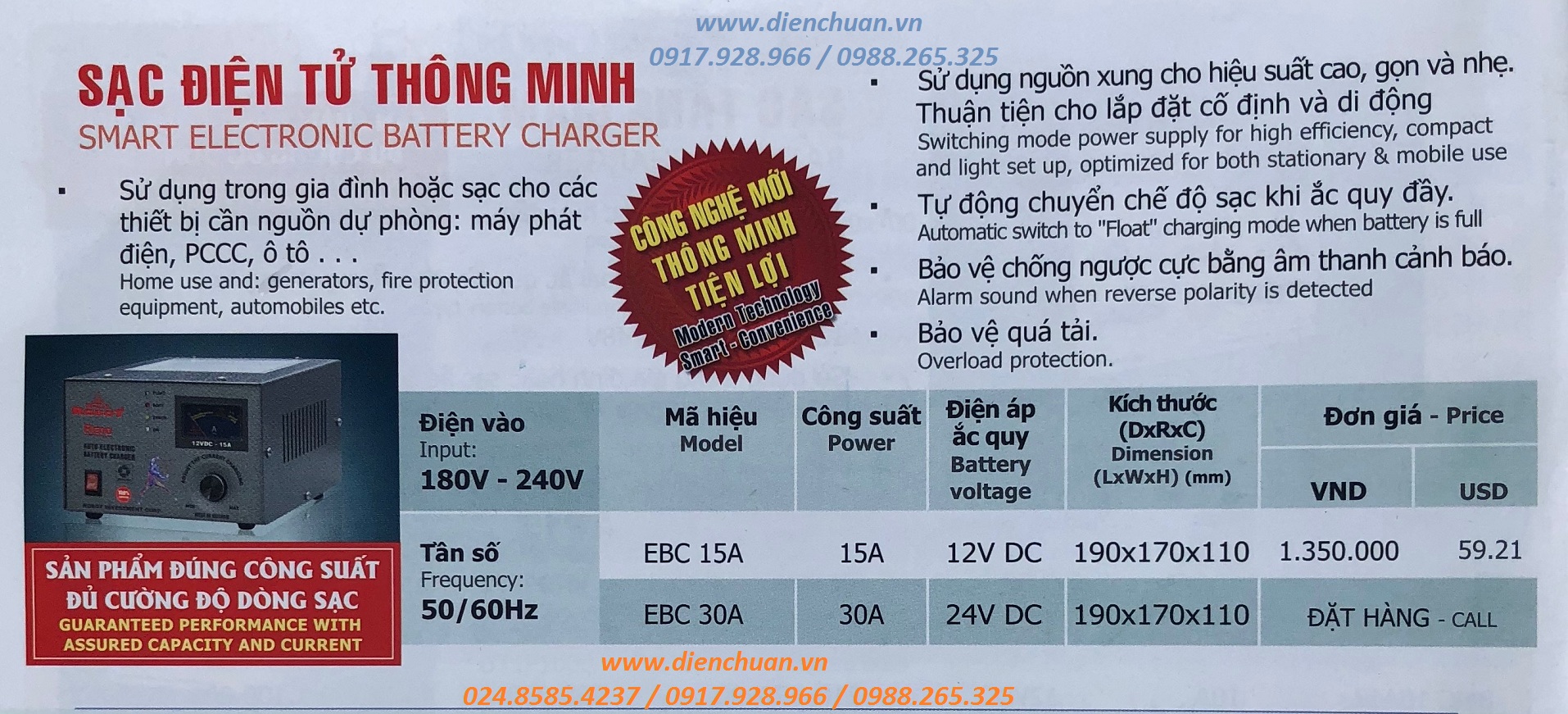 Sạc ắc quy tự động điện tử Robot 15A EBC 15