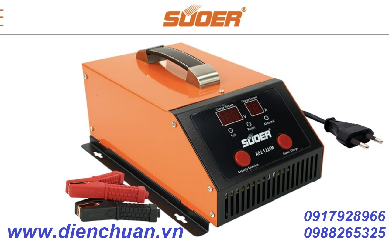 Tại Công ty Điện Chuẩn đang bán máy sạc ắc quy tự động Suoer A02-1224M ( 12V/24V 10A/ 5Ah-100Ah ) có giá là: 750,000 VND, bạn có thể dễ dàng liên hệ với chúng tôi qua số điện thoại / ZALO: 0917.928.966 / 0988.265.325 để có thể nhận được các khuyến mại và mua sản phẩm ắc quy chính hàng với giá rẻ hơn so với các cửa hàng khác trong khu vực.