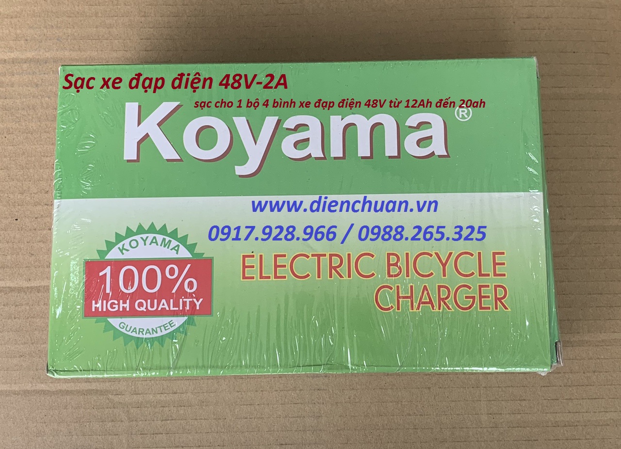 Sạc ắc quy xe đạp điện 48V 2A Koyama ( sạc cho1 bộ 4 bình ắc quy 48V từ 10Ah đến 20ah )