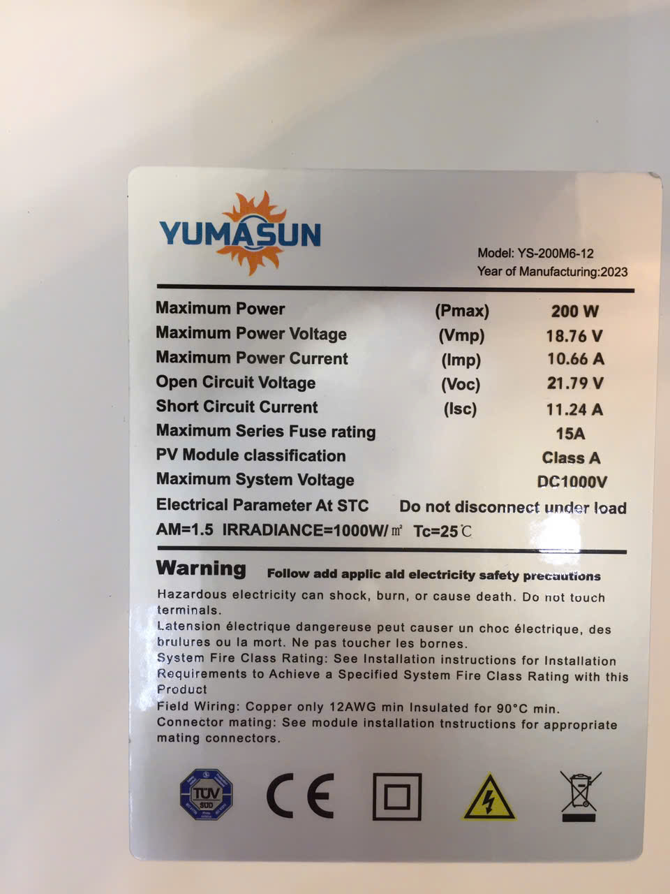Hình ảnh Tấm pin năng lượng mặt trời 200W YUMASUN YS-200MS-12