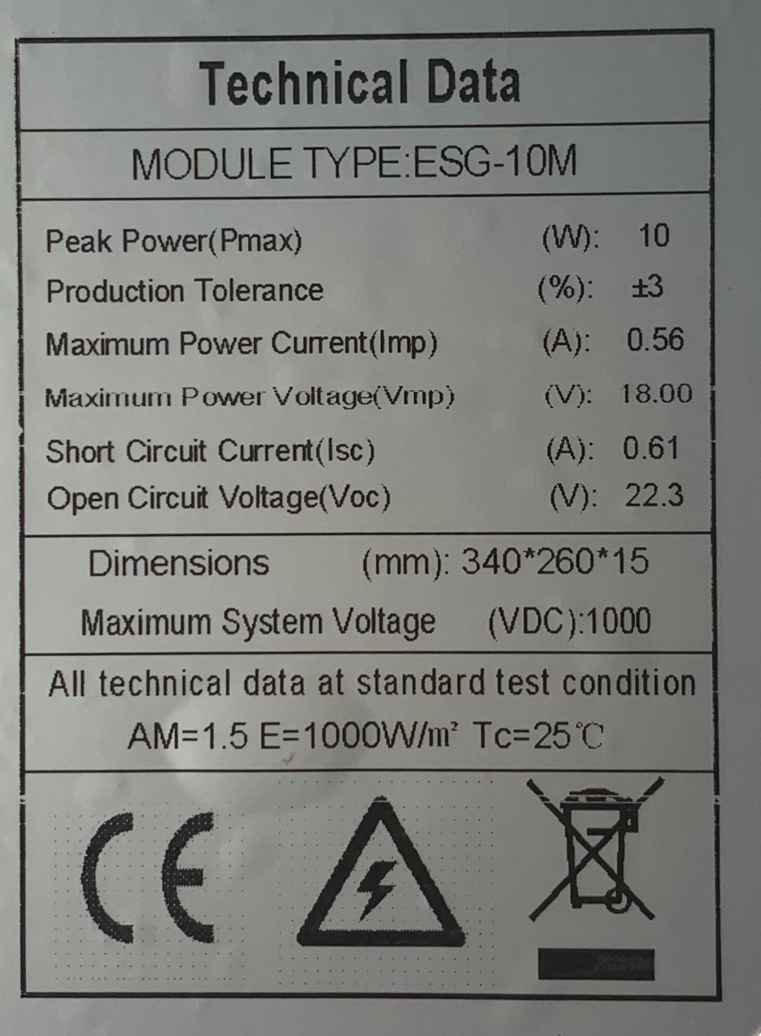 Tấm pin năng lượng mặt trời Mono 10W 18V ESG-10M