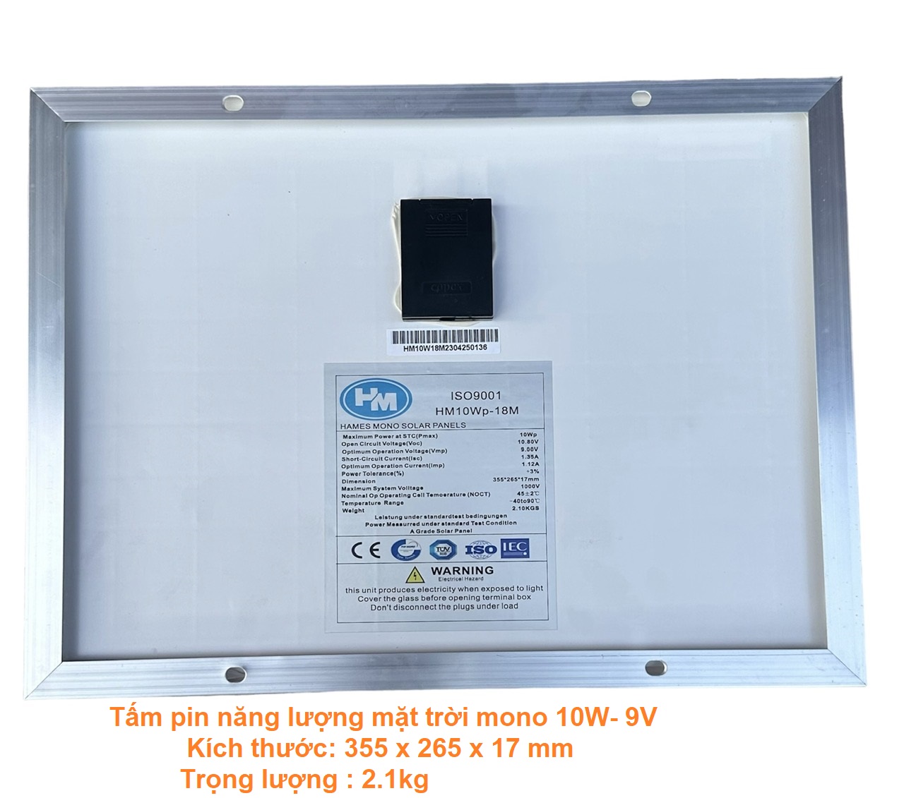 Tấm pin năng lượng mặt trời mono 10W- 9V Hames HM10Wp-18M