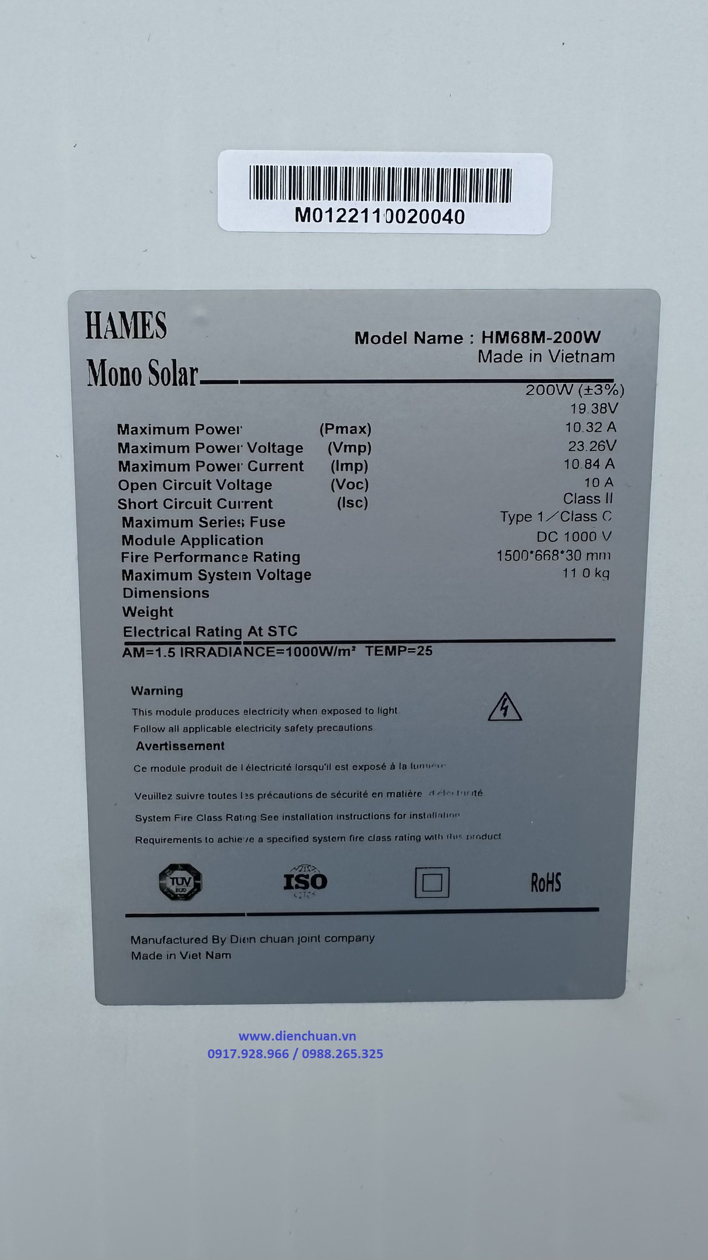 Tấm pin năng lượng mặt trời mono 200W công nghệ mới Halfcell 9BB HM68M-200W