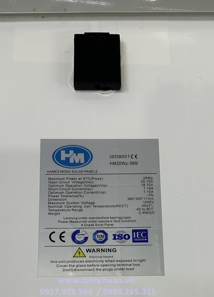 Tấm pin năng lượng mặt trời Mono 20W HM20Wp-36M ( 20M-36) tốt nhất