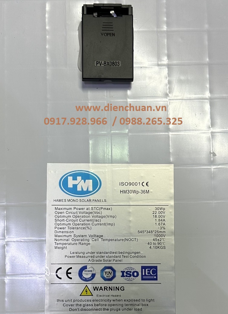 Tấm pin năng lượng mặt trời Mono 30W (Hames HM30Wp-36M ) loại tốt