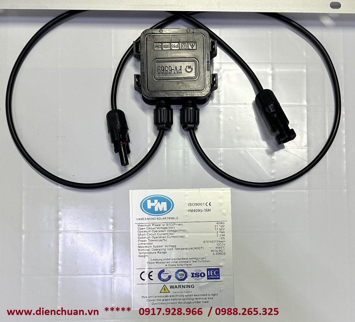 Công ty Điện Chuẩn là nhà nhập khẩu phân phối Tấm pin năng lượng mặt trời mono 40W Hames HM40Wp-36M tại thị trường Việt Nam, công ty chúng tôi còn kinh doanh phân phối bình ắc quy, inverter - kích điện- Biến tần, tấm pin năng lượng mặt trời, quạt ắc quy 12V DC/ quạt năng lượng mặt trời, ổn áp- biến áp và các thiết bị điện khác lâu năm trên thị trường, các sản phẩm của công ty chúng tôi bán ra là hàng mới chính hãng, giá cả phải chăng, bảo hành dài hạn, tư vấn nhiệt tình.